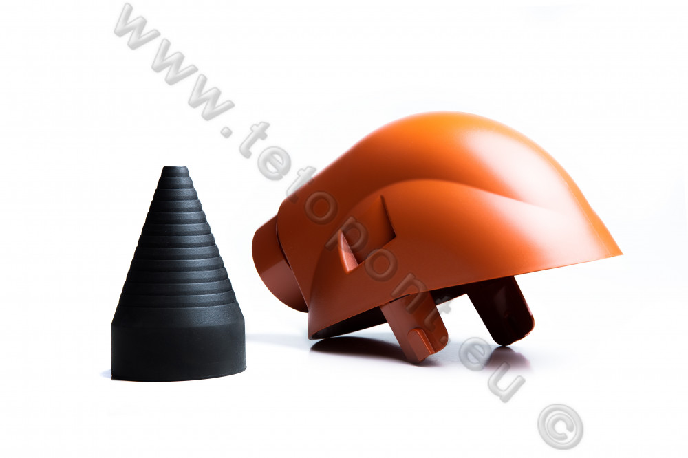 Rugalmas gumiharang szorosan körülveszi az átvezetett csövet, ezáltal megakadályozza az esővíz behatolását.