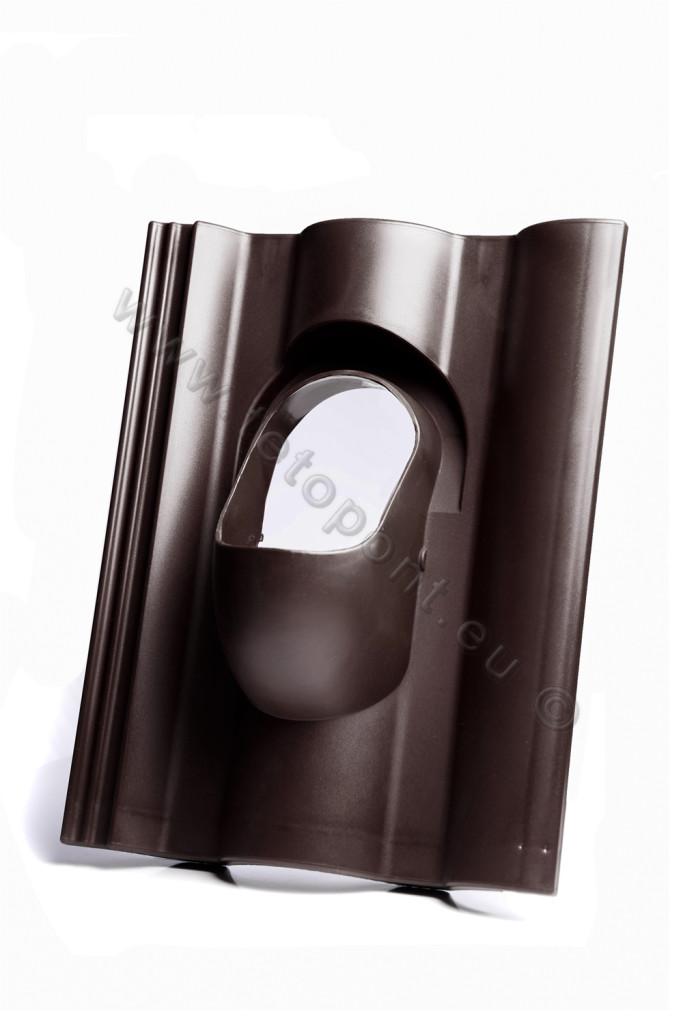 Átvezetőcserép nagy hullámos beton tetőcseréphez, különböző átvezetések megoldásához. 110 mm felépítmények építhetők rá.Barna RAL 8017 színben.