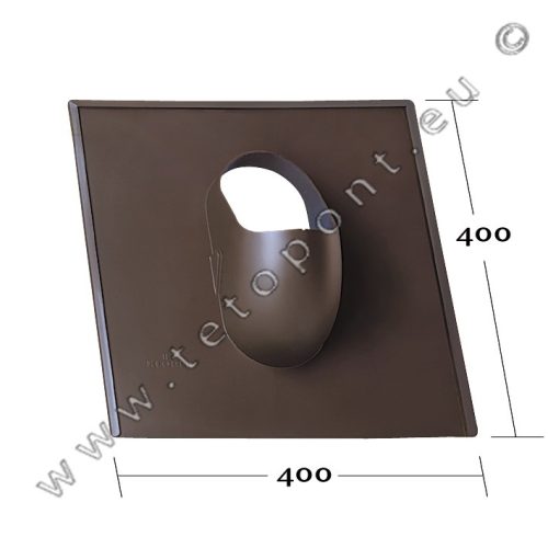 Univerzális átvezető 400 x 400 mm, elsősorban sík tetőfedő anyagokhoz. Bitumenzsindelyhez is alkalmazható. 110 mm felépítmények építhetők rá.Antracit RAL 7016 színben.